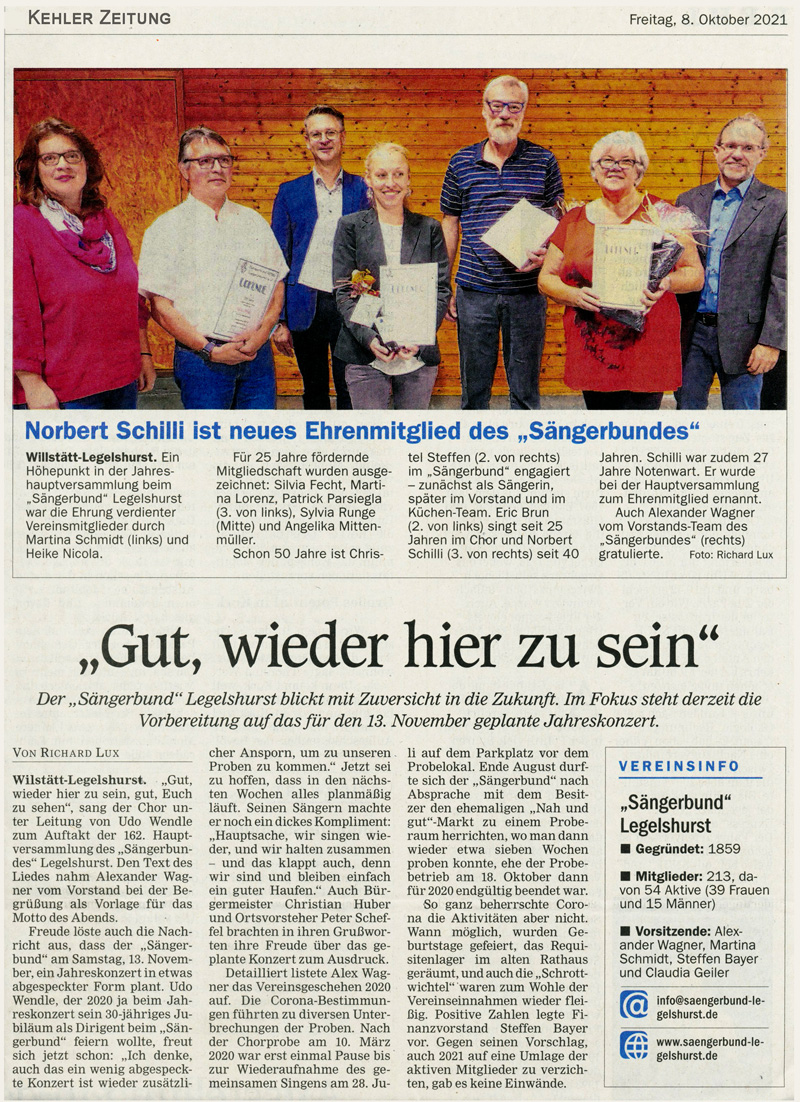 Für Rückfragen oder zur Vereinbarung eines Termins, steht Harald Stahl gerne zur Verfügung, Tel. 07852 1040 oder per Mail an info@saengerbund-legelshurst.de.